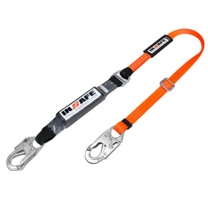 Elemento parte de un sistema personal de detención de caídas, eslinga sencilla regulable en reata polyester de alta tenacidad, ganchos de seguridad ¾ con resistencia de 5000 lbf y puertas de 3600 lbf, sistema graduable a través de una hebilla para aumentar o reducir la longitud de la eslinga. Paquete absorbedor de energía tiene una elongación máxima de 1,2m (48 pulgadas), en caso de una caída reduce la fuerza de impacto a 900 lbf (4kN) o menos. Rango de capacidad: mínimo 130 lbs - máximo 310 lbs (1 persona) incluyendo uniforme, equipos y cualquier herramienta del trabajador, conforme ANSI Z359.13-2013 y resolución colombiana 4272 de 2021.