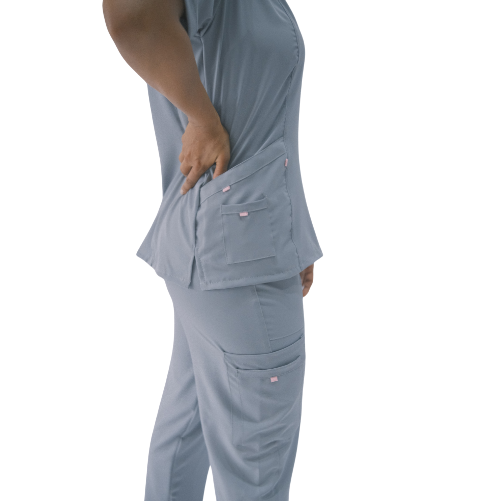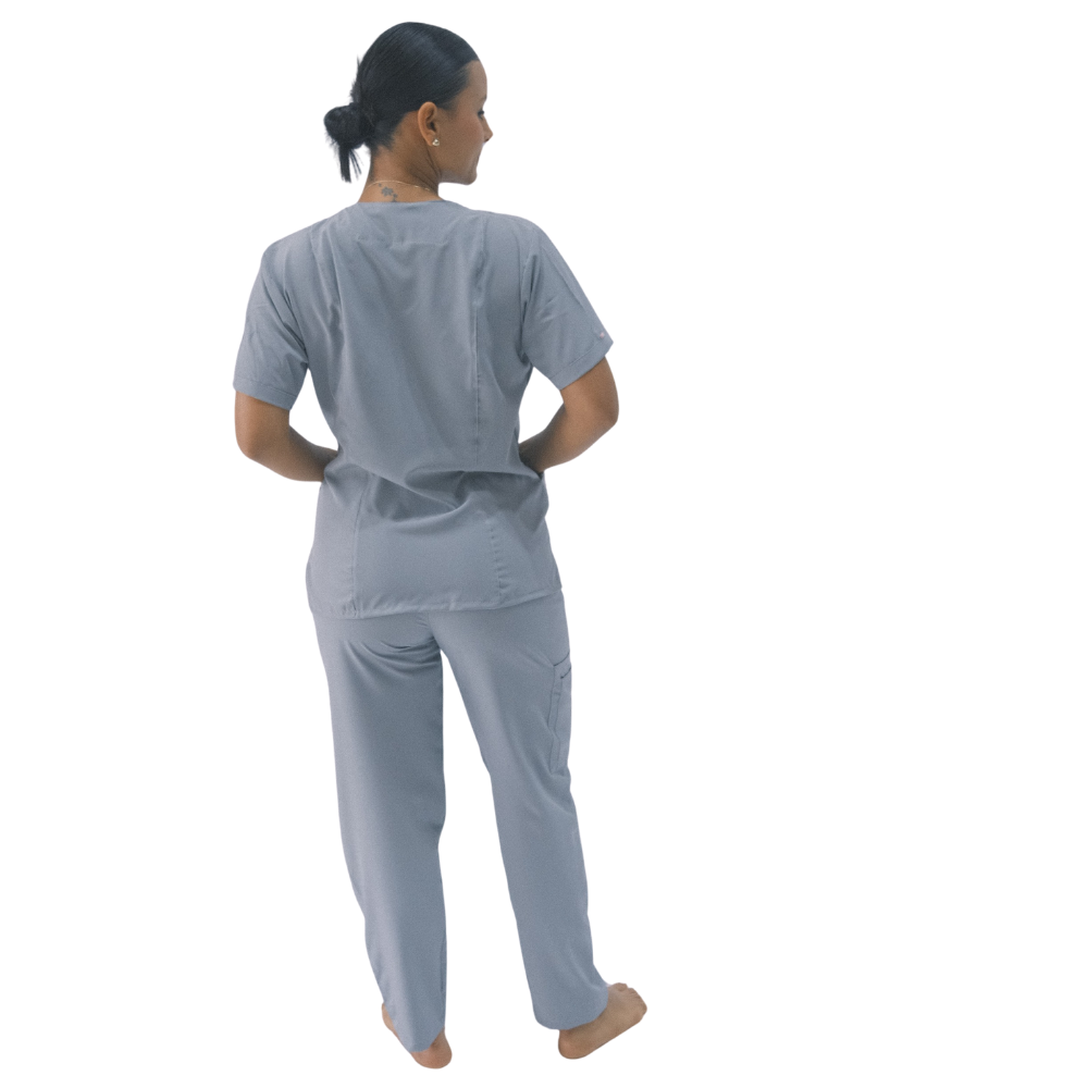 El conjunto antifluido dama gris strech de dos piezas está diseñado para brindar protección, comodidad y estilo en ambientes laborales y de uso profesional. Está confeccionado en tela antifluido con tecnología strech, lo que permite que la prenda sea repelente a líquidos y salpicaduras, evitando manchas y manteniendo al usuario más protegido frente a salpicaduras de agua, fluidos corporales u otros elementos líquidos presentes en el entorno, la tela strech aporta flexibilidad, suavidad al tacto y una caída natural que mejora el ajuste al cuerpo, permitiendo mayor libertad de movimiento sin perder la capacidad de protección al tiempo que ofrece elasticidad y libertad de movimiento, adaptándose de manera ergonómica al cuerpo.