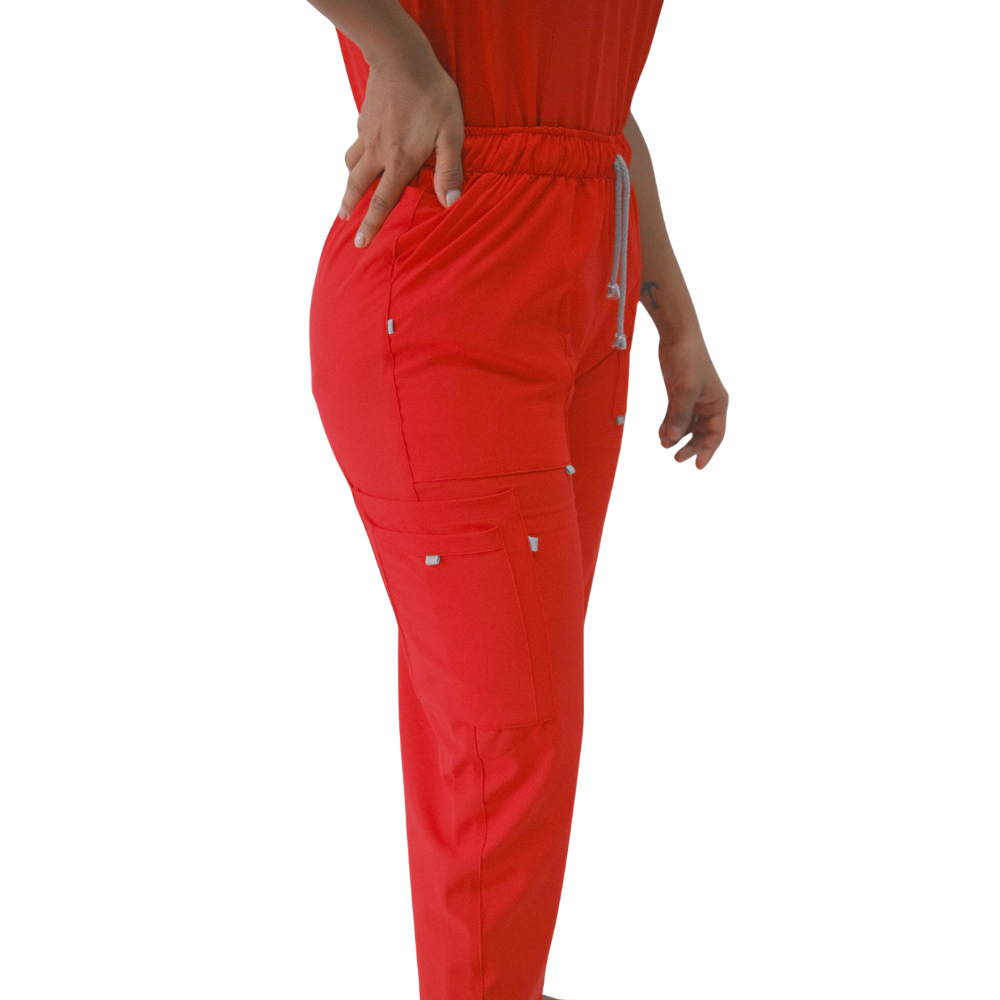 El conjunto antifluido dama rojo stretch de dos piezas está diseñado para brindar protección, comodidad y estilo en ambientes laborales y de uso profesional. Está confeccionado en tela antifluido con tecnología stretch, lo que permite que la prenda sea repelente a líquidos y salpicaduras, evitando manchas y manteniendo al usuario más protegido frente a salpicaduras de agua, fluidos corporales u otros elementos líquidos presentes en el entorno, la tela stretch aporta flexibilidad, suavidad al tacto y una caída natural que mejora el ajuste al cuerpo, permitiendo mayor libertad de movimiento sin perder la capacidad de protección al tiempo que ofrece elasticidad y libertad de movimiento, adaptándose de manera ergonómica al cuerpo.