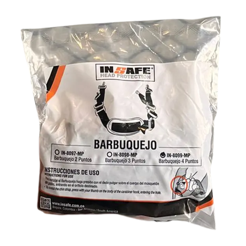 El barbuquejo de 4 puntos Insafe es un accesorio de seguridad diseñado para proporcionar máxima sujeción y estabilidad al casco de protección, especialmente en trabajos en altura, rescate, construcción y actividades de riesgo donde los movimientos bruscos o las condiciones de viento pueden comprometer la seguridad del trabajador.