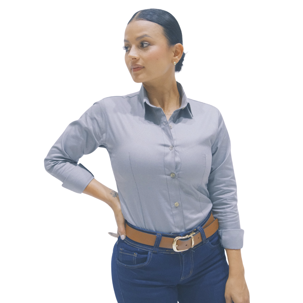 La Camisa manga larga para dama en drill gris está confeccionada con 100 % algodón en tejido diagonal 2×1 (drill), color gris neutro. Diseñada para ofrecer comodidad y resistencia en entornos laborales, dotaciones corporativas o usos formales diarios. Su acabado profesional y textura firme la hacen ideal para uso prolongado.