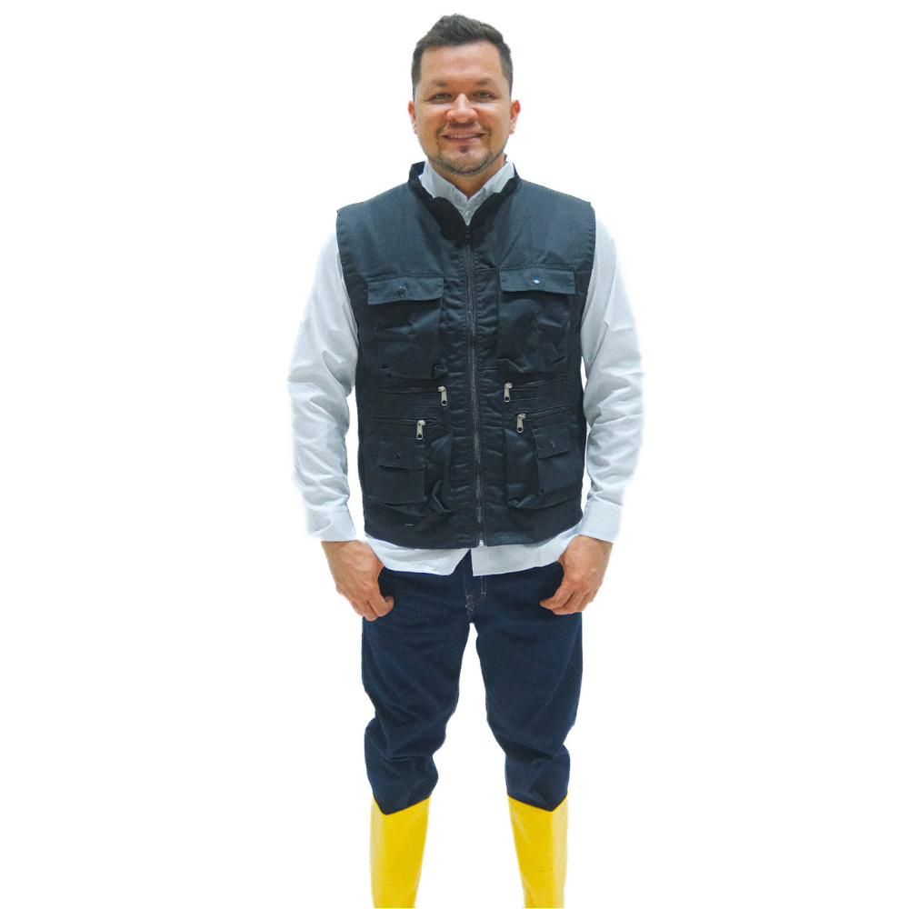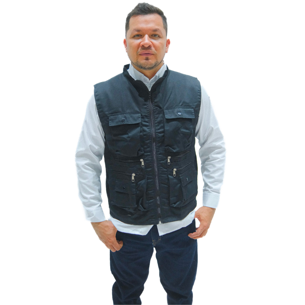 Su diseño práctico en color negro le otorga un estilo sobrio y profesional, fácilmente combinable con diferentes prendas y contextos. El chaleco cuenta con múltiples bolsillos frontales que permiten organizar y transportar herramientas, accesorios o elementos personales, ofreciendo gran funcionalidad en el trabajo o en actividades al aire libre.