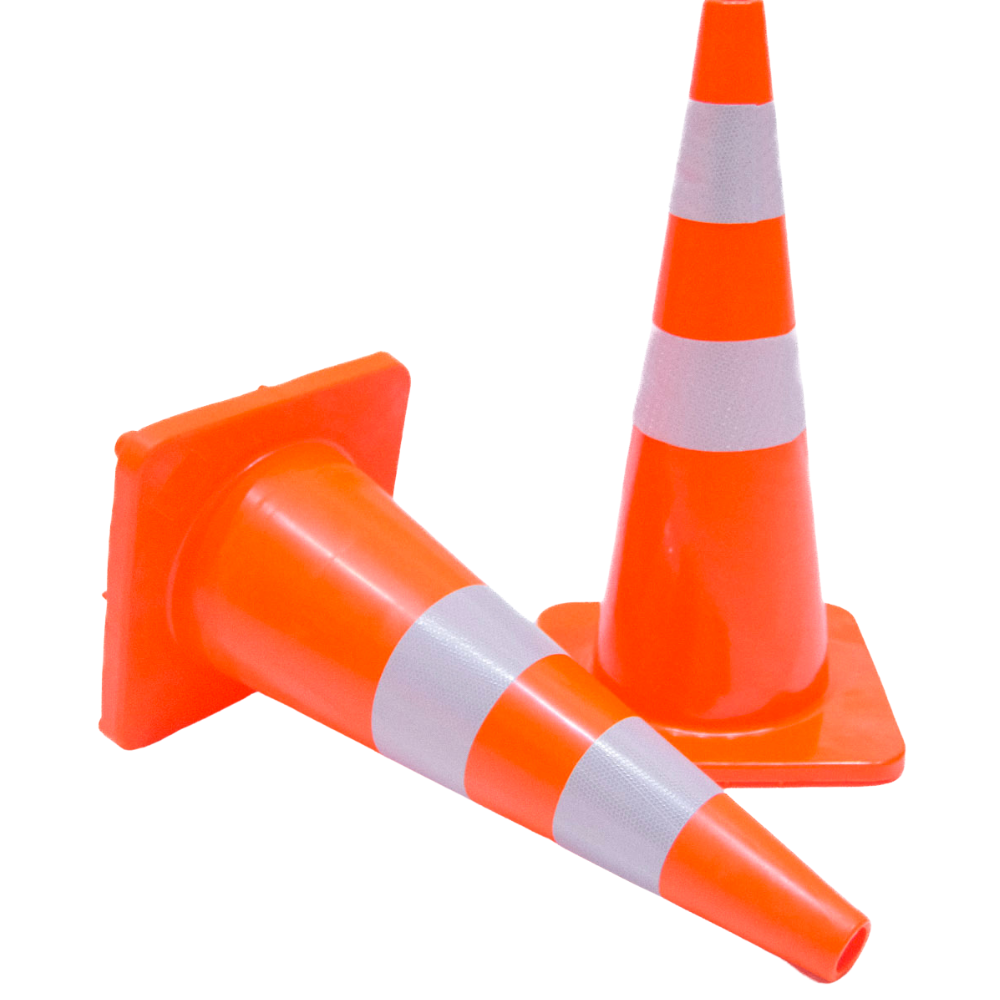 El color naranja fluorescente, combinado con bandas reflectivas (en algunos modelos), asegura una excelente percepción tanto en el día como en la noche o bajo condiciones de baja iluminación. Además, la base del cono suele ser más ancha y pesada, lo que le otorga estabilidad frente a corrientes de aire, paso de vehículos cercanos o condiciones climáticas adversas.