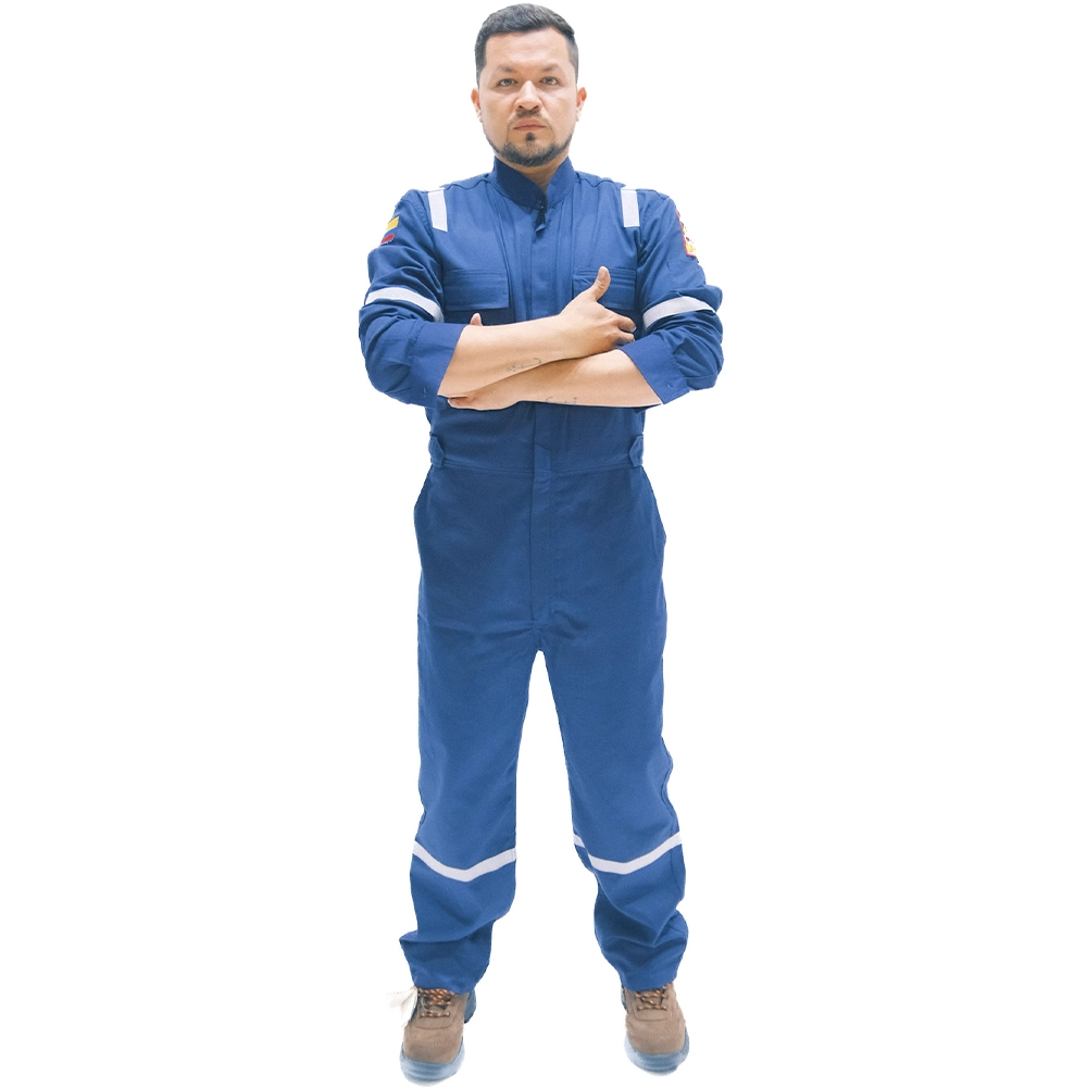 Overol ignífugo de alto desempeño, recomendado para industrias eléctricas, petroleras e industriales con exposición a riesgos térmicos. Ofrece protección certificada contra arco eléctrico y fuego repentino. Su cremallera dieléctrica garantiza mayor seguridad en ambientes eléctricos.
