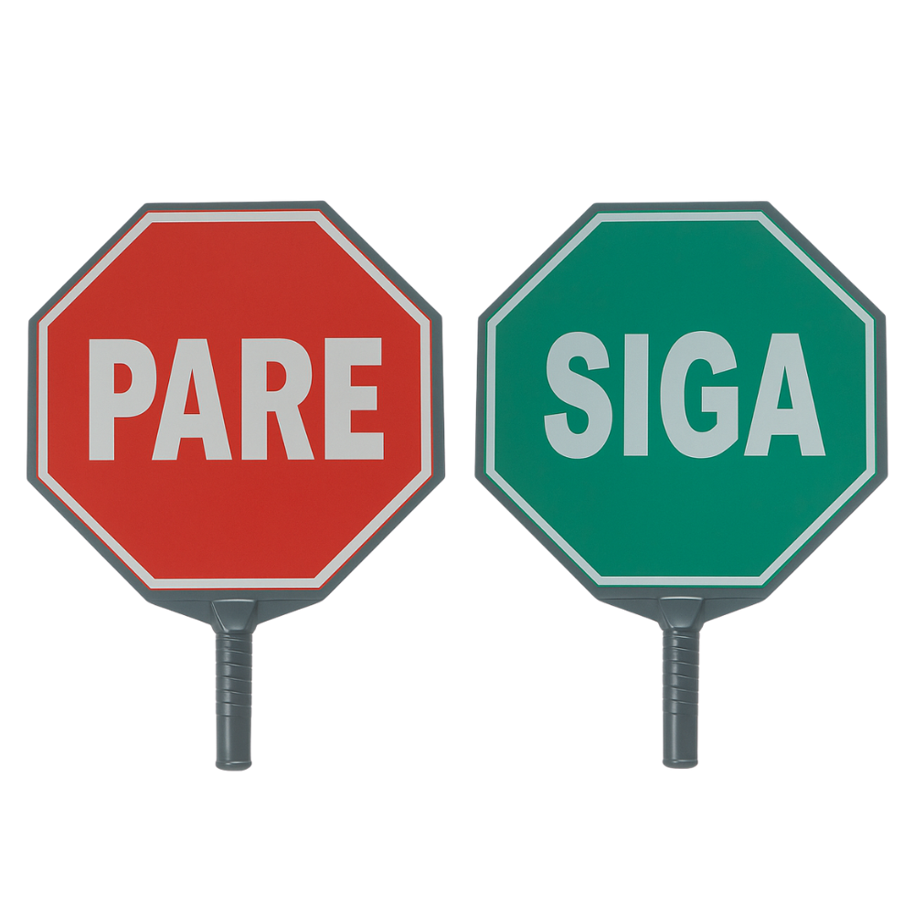 Las paletas de PARE y SIGA son herramientas de señalización manual indispensables en la gestión del tráfico vehicular y peatonal, especialmente en zonas de construcción, mantenimiento vial, entradas y salidas de parqueaderos, áreas escolares o cualquier lugar donde sea necesario controlar el flujo de tránsito de manera temporal. Su objetivo principal es garantizar la seguridad de los trabajadores, conductores y peatones, evitando accidentes y facilitando la circulación de forma organizada.